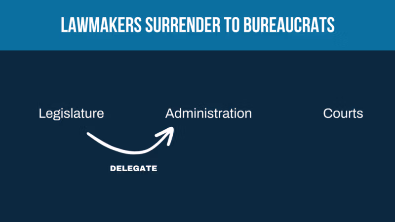 Կանոններ հաստատելու փոխարեն օրենսդիրները լիազորում են վարչակազմին՝ կանոնակարգեր, քաղաքականություն, ուղեցույցներ, հրամաններ և բոլոր տեսակի որոշումներ կայացնելու համար: