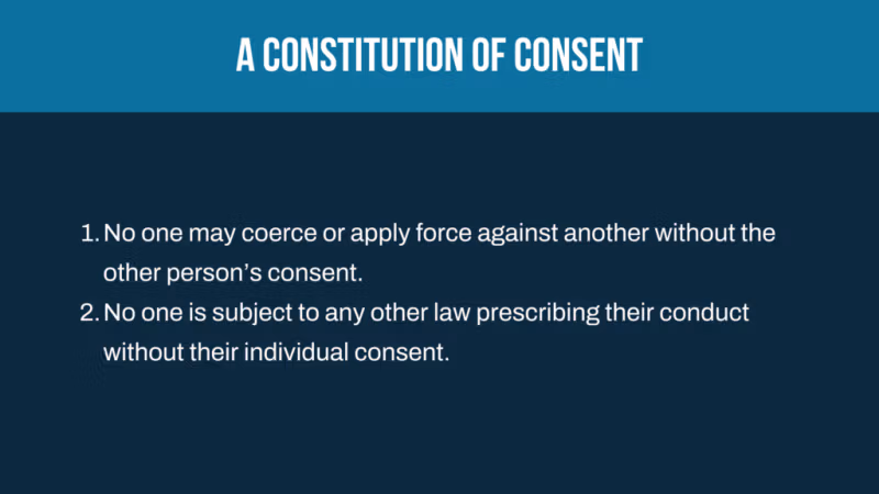 Շատ հարցեր կառաջանային. Ինչպե՞ս կարող են դատարանները կիրառել այս սկզբունքները: Ի՞նչ է տեղի ունենում, երբ տարբեր մարդիկ համաձայնում են այլ օրենքների տարբեր խմբերի: Հարկերը պահանջում են հարկադրանք, այդ դեպքում ինչպե՞ս է պետությունը ֆինանսավորում իրեն, եթե քաղաքացիները կարող են հրաժարվել հարկային օրենքների ենթարկվելուց: Այս և շատ այլ մարտահրավերներին կարելի է սկզբունքային պատասխան տալ։ Բայց դրանք մեկ այլ օրվա համար են։